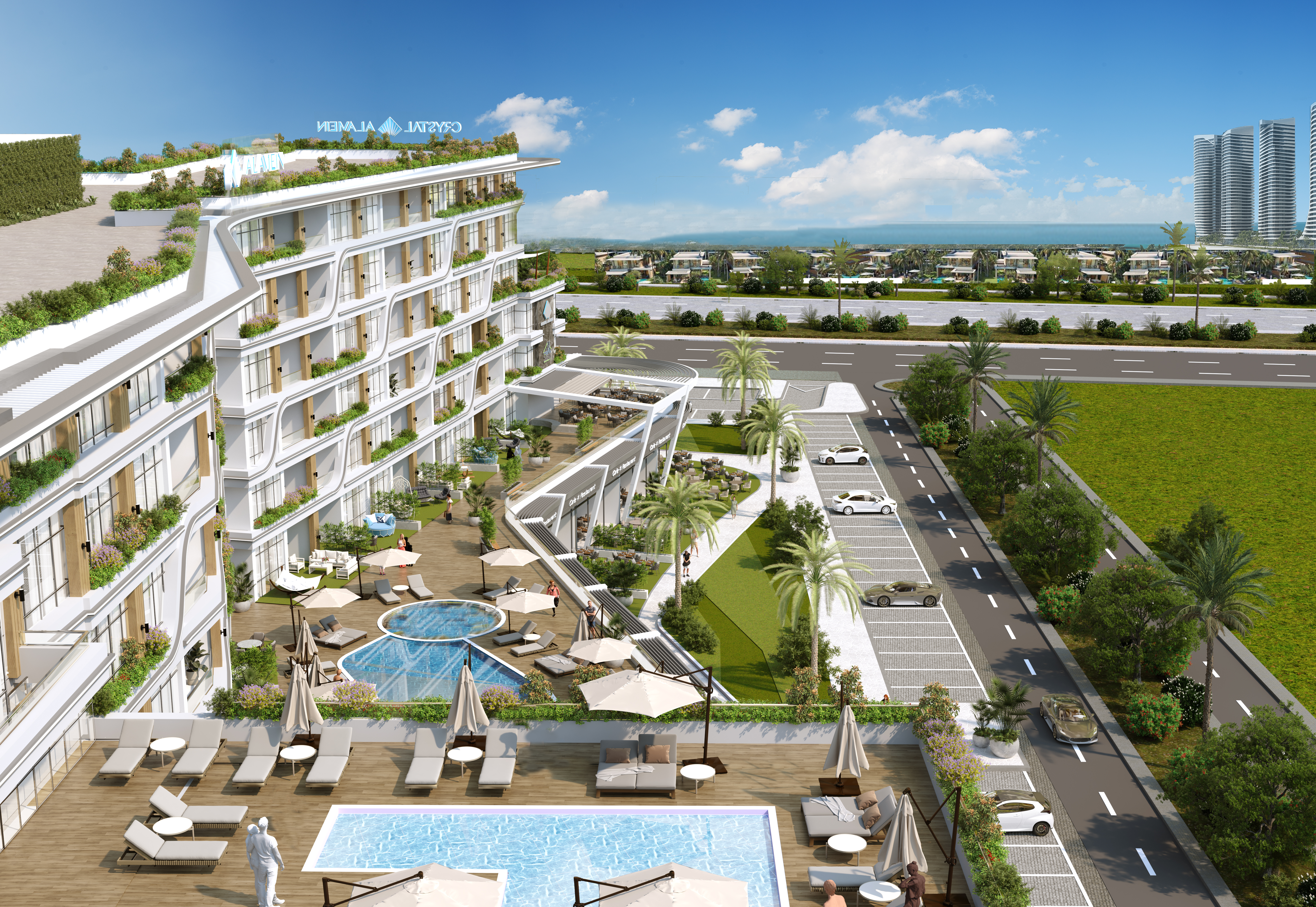 Just steps from the renowned Azur Hotel. 6 minutes to the prestigious AAST. 10 minutes to the upscale North Square Mall. 10 minutes to the iconic New Alamein Towers.